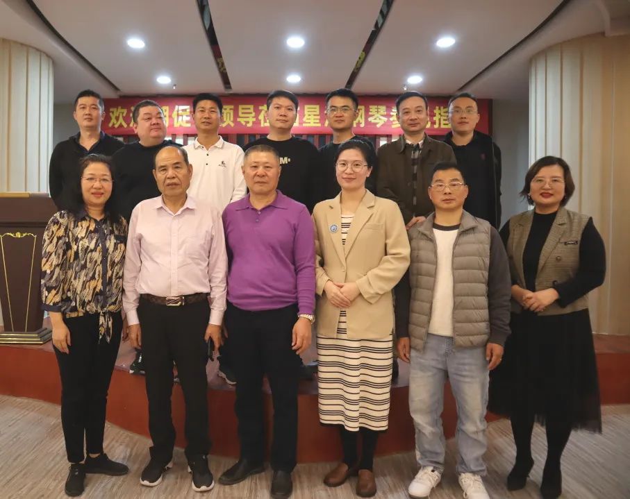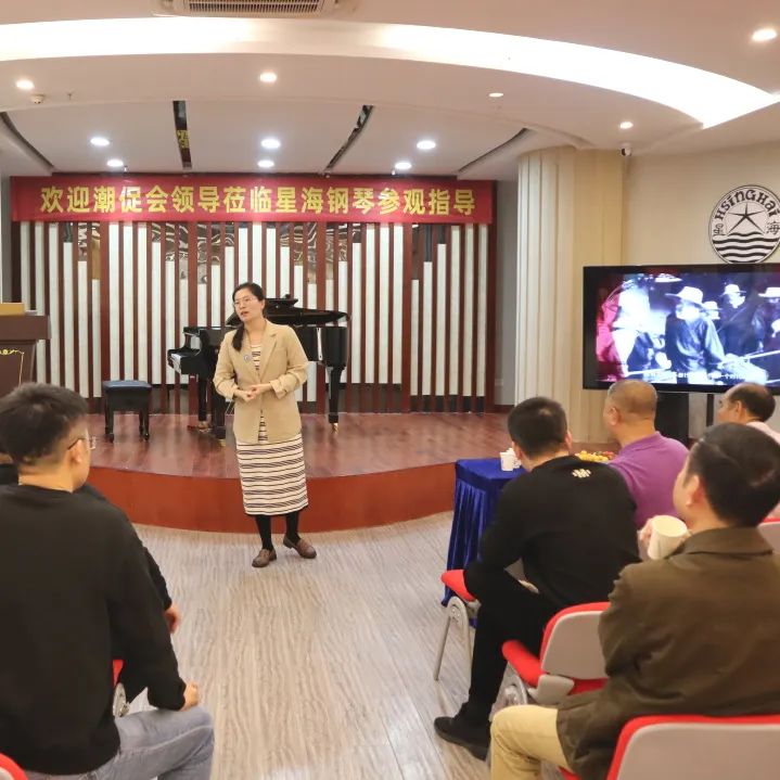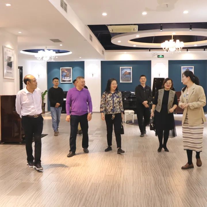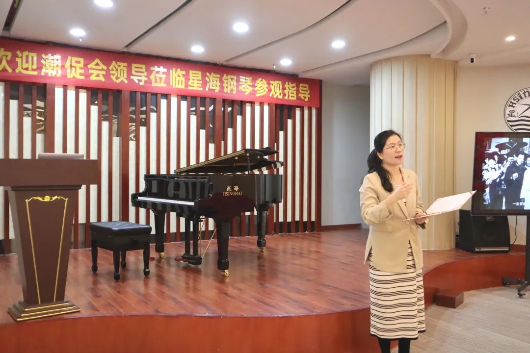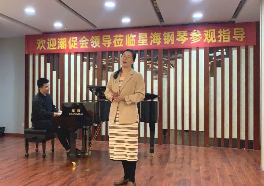▲ 我会会员林树钗热情接待我会走访人员,为走访人员讲解惠州星海钢琴专卖店开业至今一年多以来的工作情况及企业文化。