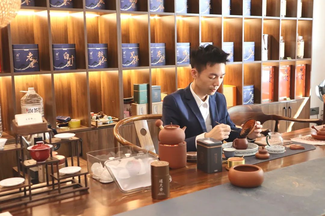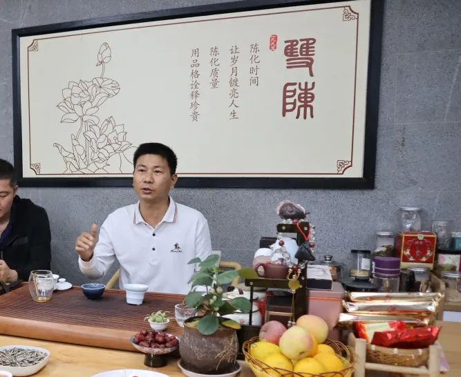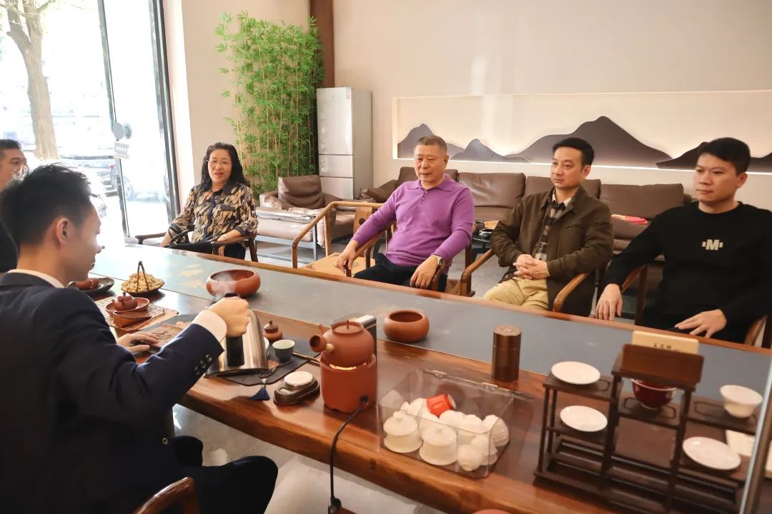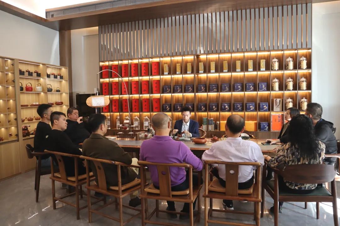我会会员洪恩博企业怡峰茶庄由经理王定铮热情接待,为我会走访人员介绍潮州凤凰单丛品种,一起品鉴赏香。
