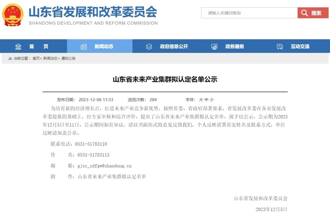 山东省未来产业集群拟认定名单