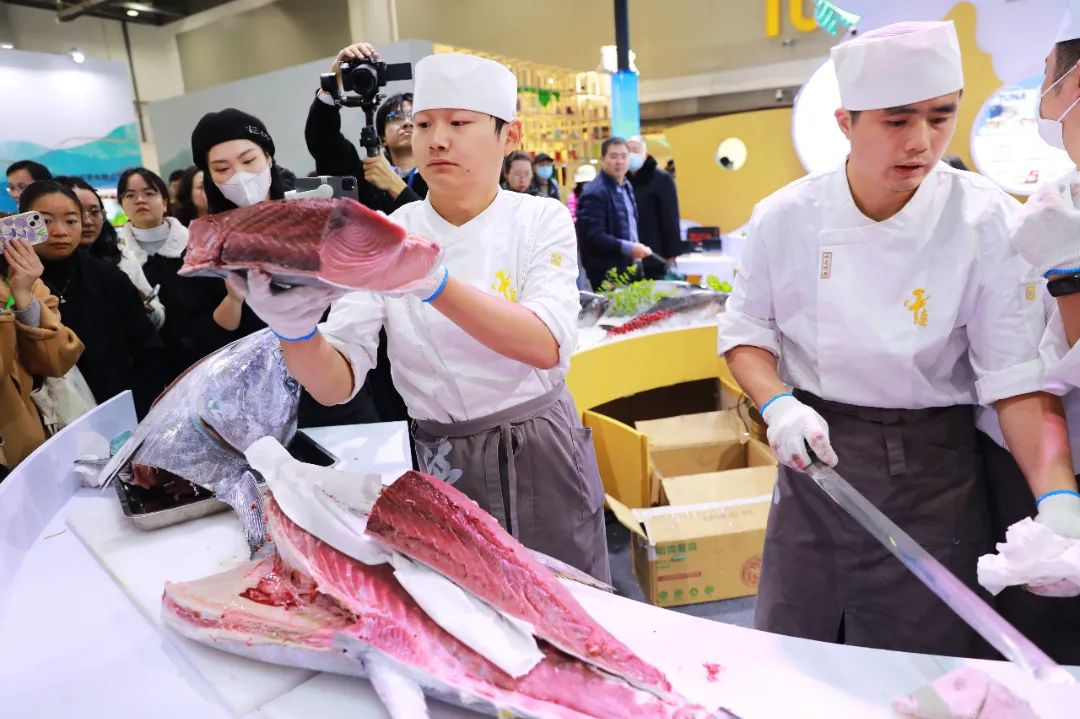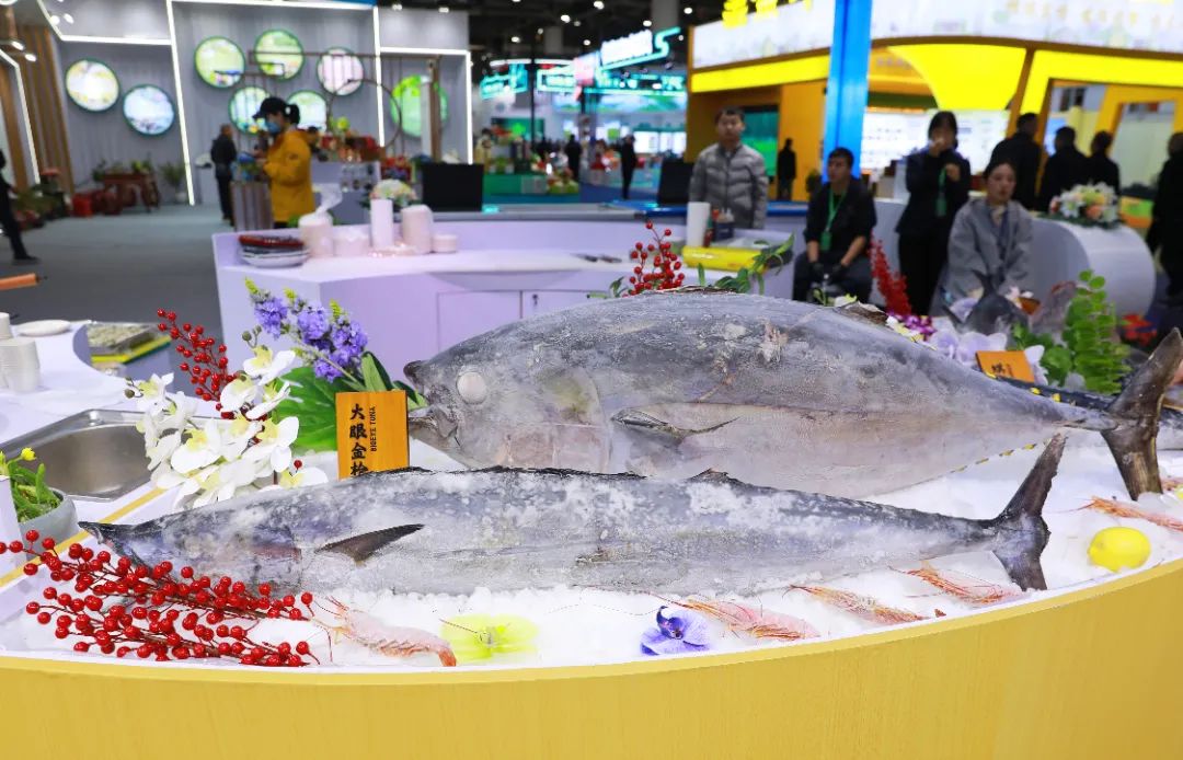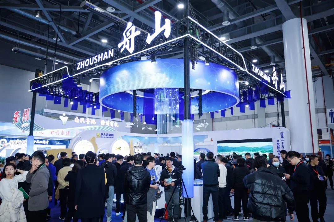 舟山展馆以做活“一条鱼”供应链体系为主题,从现代海鲜供应链体系、北纬30度现代农业、美丽海岛建设三方面重点展示远洋捕捞与精深加工全链式产业、渔农业地理标志产品、美丽海岛休闲旅游、传统特色渔农产品等。