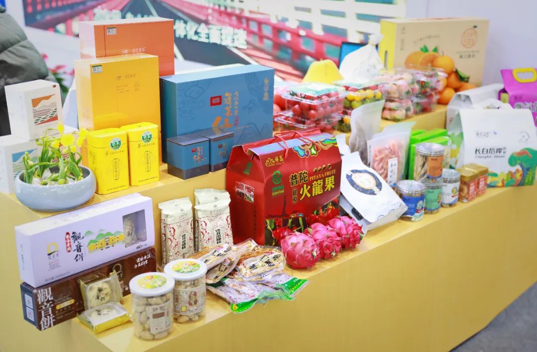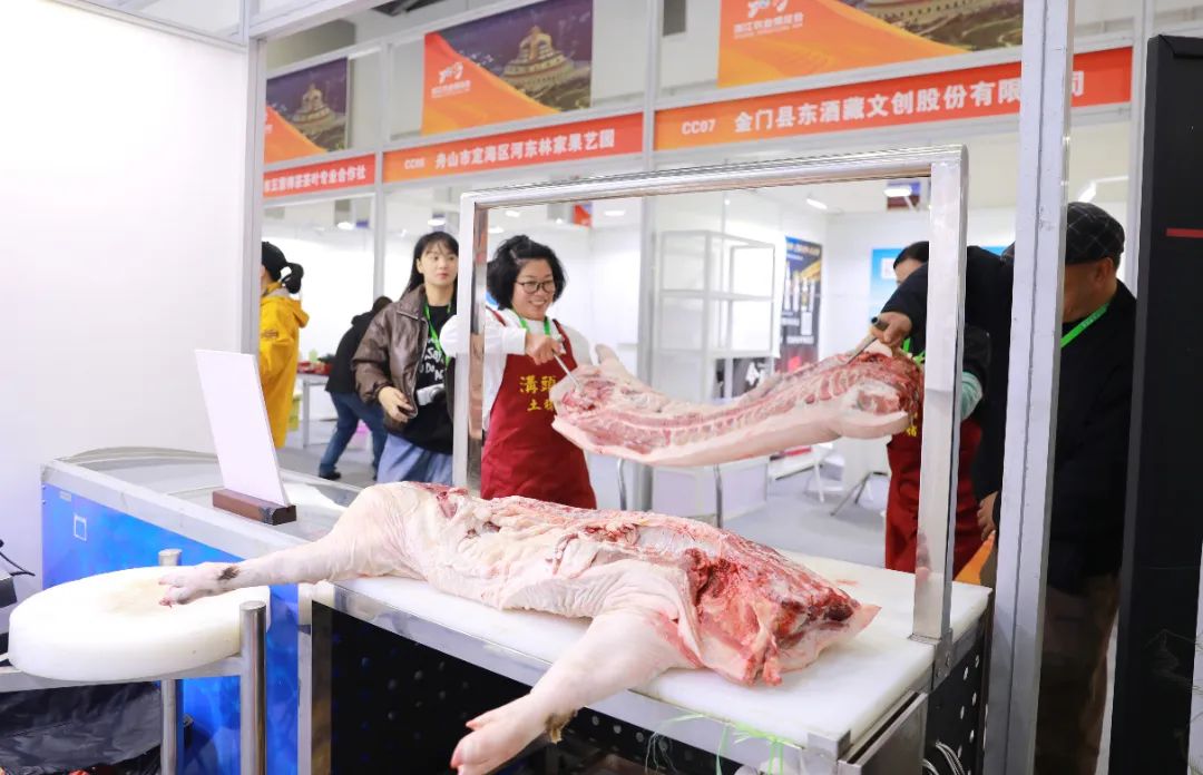 现场还有舟山大黄鱼、嵊泗贻贝展馆、普陀佛茶、沙洋晒生等产品琳琅满目。