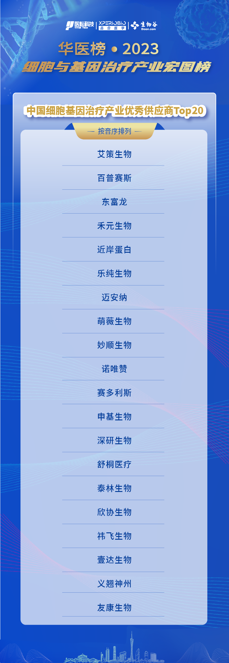 中国细胞基因治疗产业优秀供应商榜单