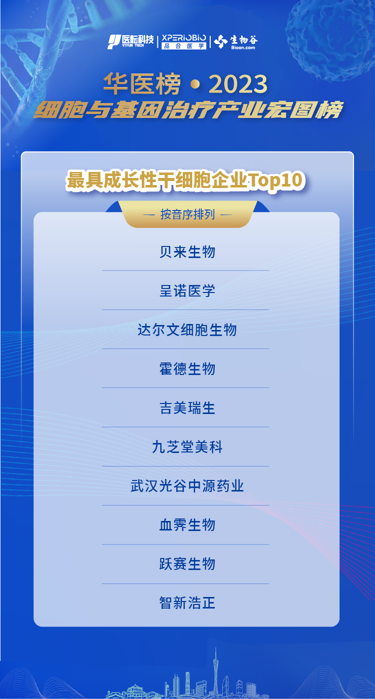 最具成长性干细胞企业榜单