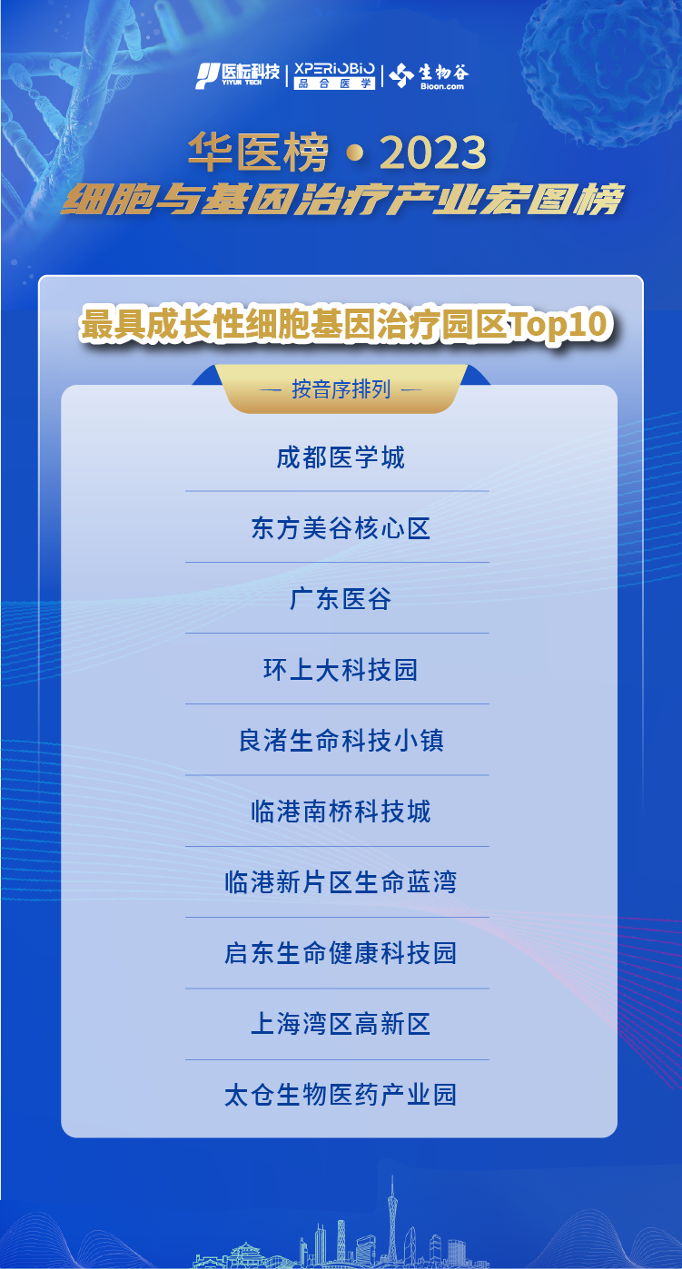 最具成长性细胞基因治疗园区榜单