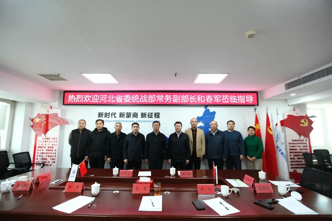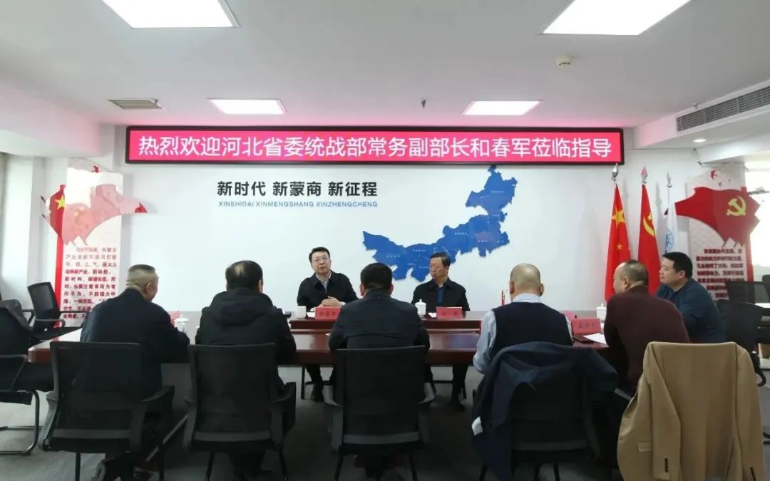 12月6日,河北省委统战部常务副部长和春军莅临河北省内蒙古商会,指导商会如何高质量有序发展。 河北省内蒙古商会会长高岚,常务副会长、党支部书记李泉,常务副会长许文、武祥、孟建忠、王海林、陈海峰,副秘书长兼办公室主任白珊,副秘书长延文军给予热情接待。高岚会长代表商会向和春军常务副部长的到来表示热烈的欢迎,并汇报了河北省内蒙古商会的建设发展概况。