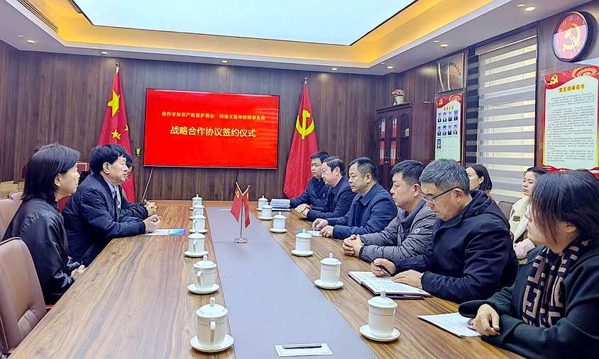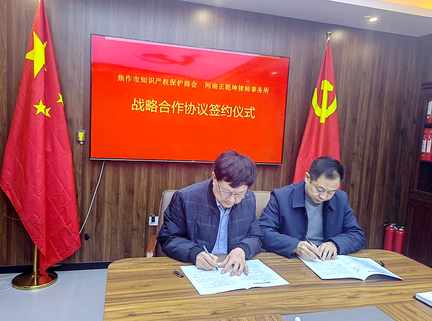 12月6日下午,焦作市知识产权保护商会与河南正乾坤律师事务所签订战略合作协议书,签约仪式在河南正乾坤律师事务所举行。会议由河南正乾坤律师事务所主任宋立成主持。焦作市知识产权保护商会副会长李建立、办公室主任刘桂芳、河南正乾坤律师事务所主任宋立成、副主任刘疆等律师参加了本次活动。