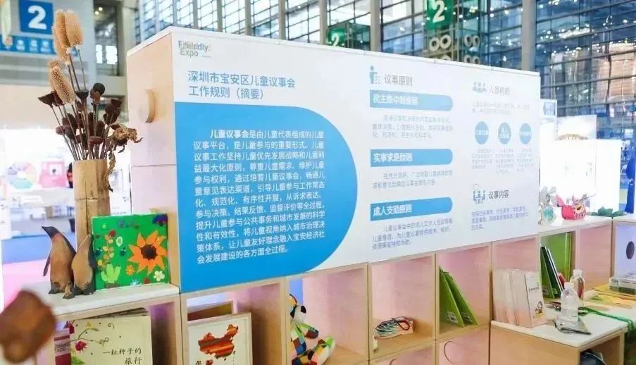 儿博会首秀儿童友好主题展,通过社会政策、公共服务、权利保障、成长空间、发展环境等五大友好领域来展示儿童友好国际脉络、中国特色和深圳实践。宝安展区以权利保障为主要内容,围绕家庭教育、权益保障、儿童参与三大板块,展现全域儿童友好的湾区特色。