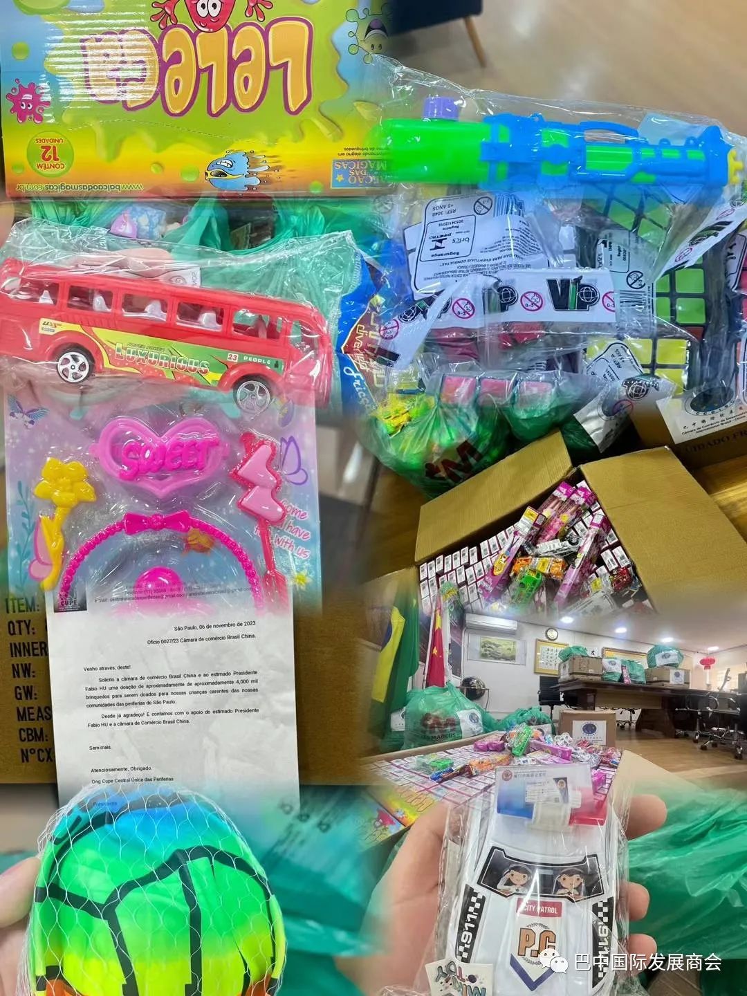 巴中国际发展商会会长胡忠伟,厦门商务局巴西海外联络点巴西负责人王赢共计准备了4000余件玩具和蛋糕,包括芭比娃娃、皮球、小汽车、水枪、彩泥、魔方及各种口味蛋糕等,作为圣诞礼物,送去圣保罗州ONE CUPE- Central Única das Periferias机构,分发到给圣保罗州的孩子们的手中。