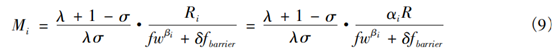 求得局部均衡下的企业数量Mi满足: