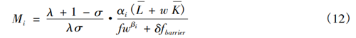 产品市场均衡时,各个行业从事生产活动的在位企业数量Mi不变,且当期成功进入并进行生产的新企业数量