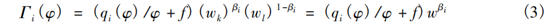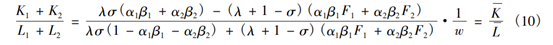 在生产环节,企业投入资本和劳动两种生产要素,资本品的价格为wk,劳动的价格为wl。若将劳动作为计价物,即wl=1,并将wk计为w,则w代表了资本与劳动的相对价格。假设企业具有Cobb-Douglas形式的生产函数,此时其成本函数可表示为: