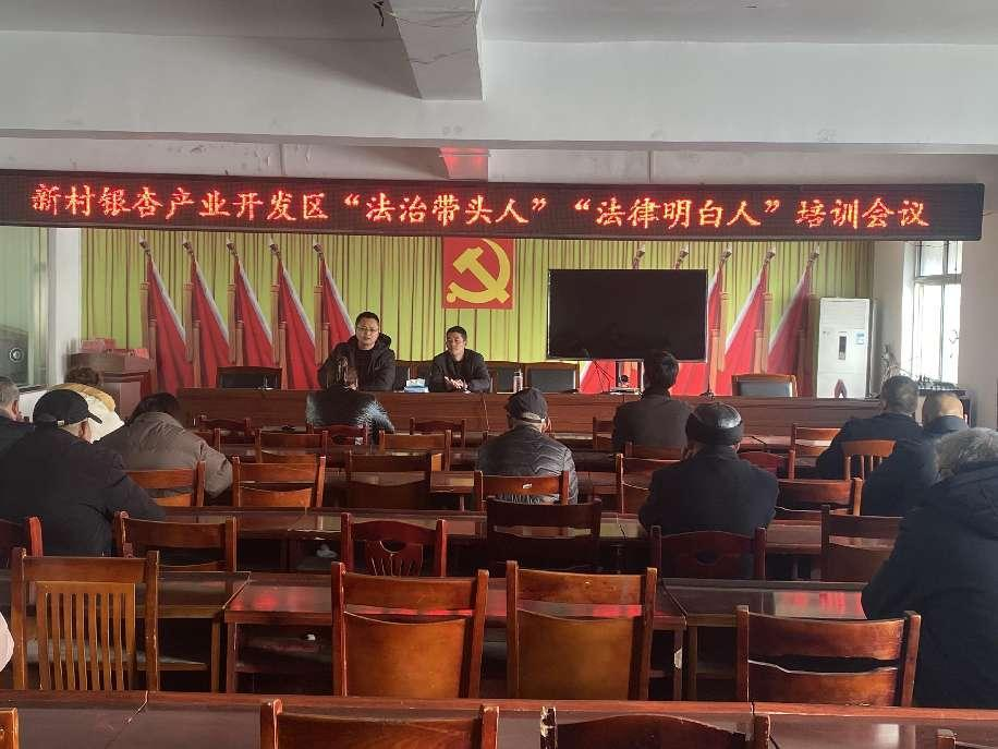 12月8日,新村银杏产业开发区组织召开第四季度“法治带头人”“法律明白人”培训会,进一步提升开发区各村干部的法律素养和法治工作能力水平,推进基层民主法治建设。