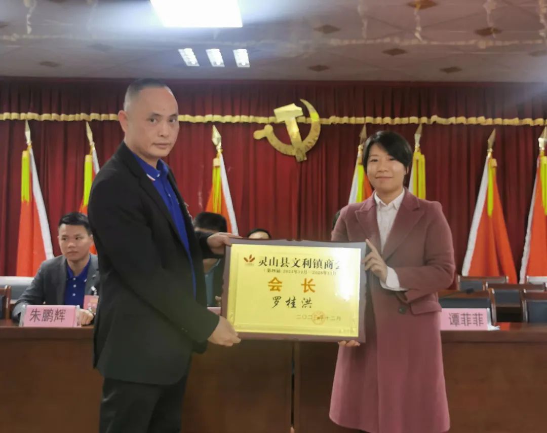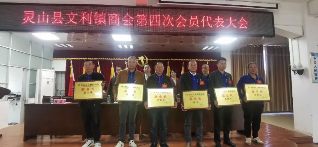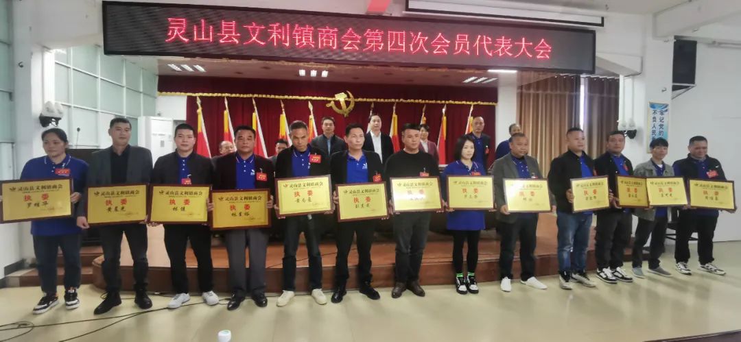 灵山县工商联主席谭菲菲,文利镇党委书记梁德业,文利镇党委统战委员、武装部部长潘世东亲临大会指导。会上,给新当选会长、副会长、秘书长、委员和名誉会长分别进行了授牌。谭菲菲作指导讲话,对新一届商会班子寄予了厚望,提出了具体的工作要求;梁德业致闭幕词。