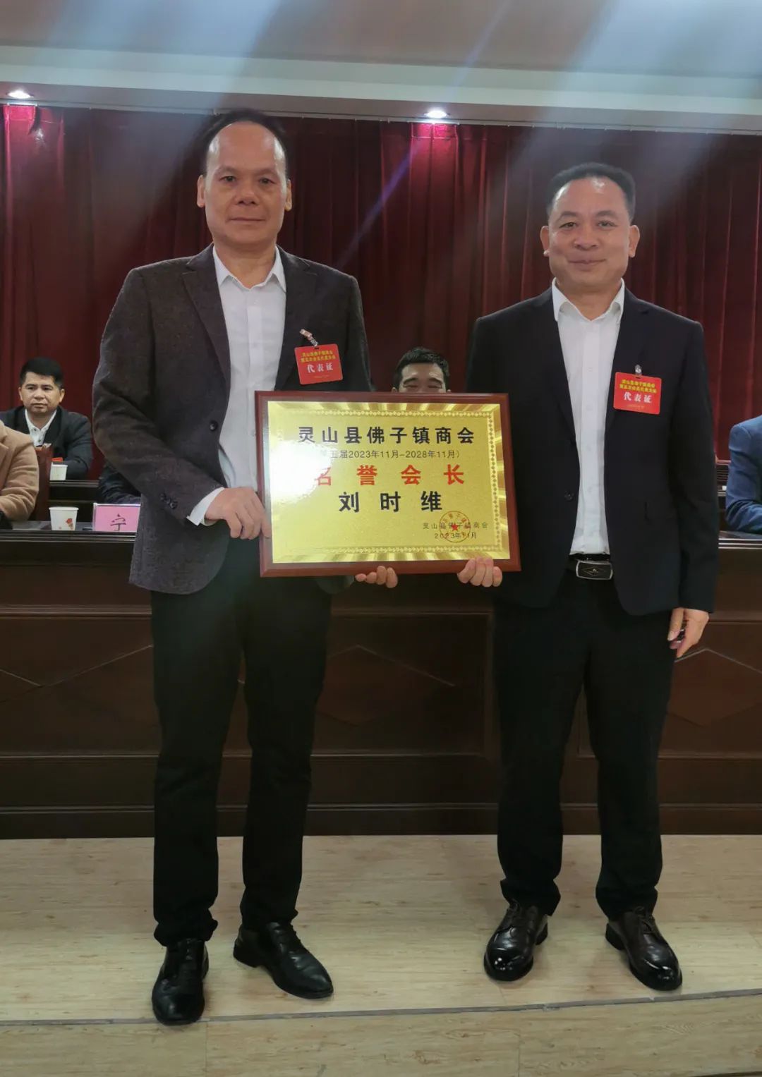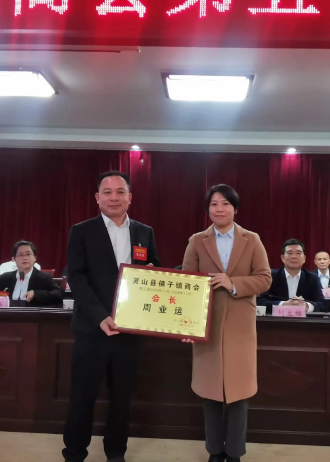 当选为副会长、秘书长。灵山县委统战部副部长、县工商联党组书记刘立雄,灵山县工商联主席谭菲菲,佛子镇党委书记
