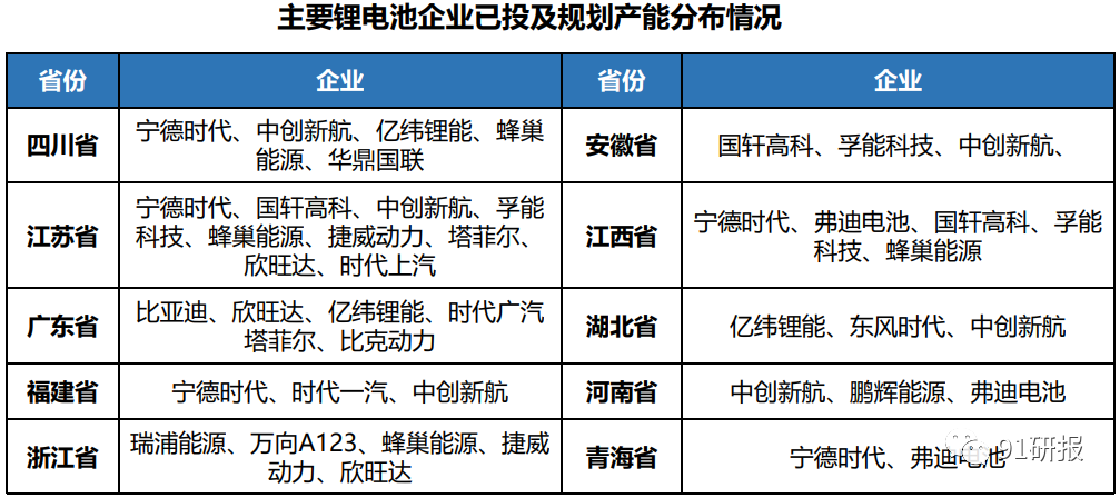 1.从锂电产业规模看,广东、江苏、福建、四川等省份位居全国前列。