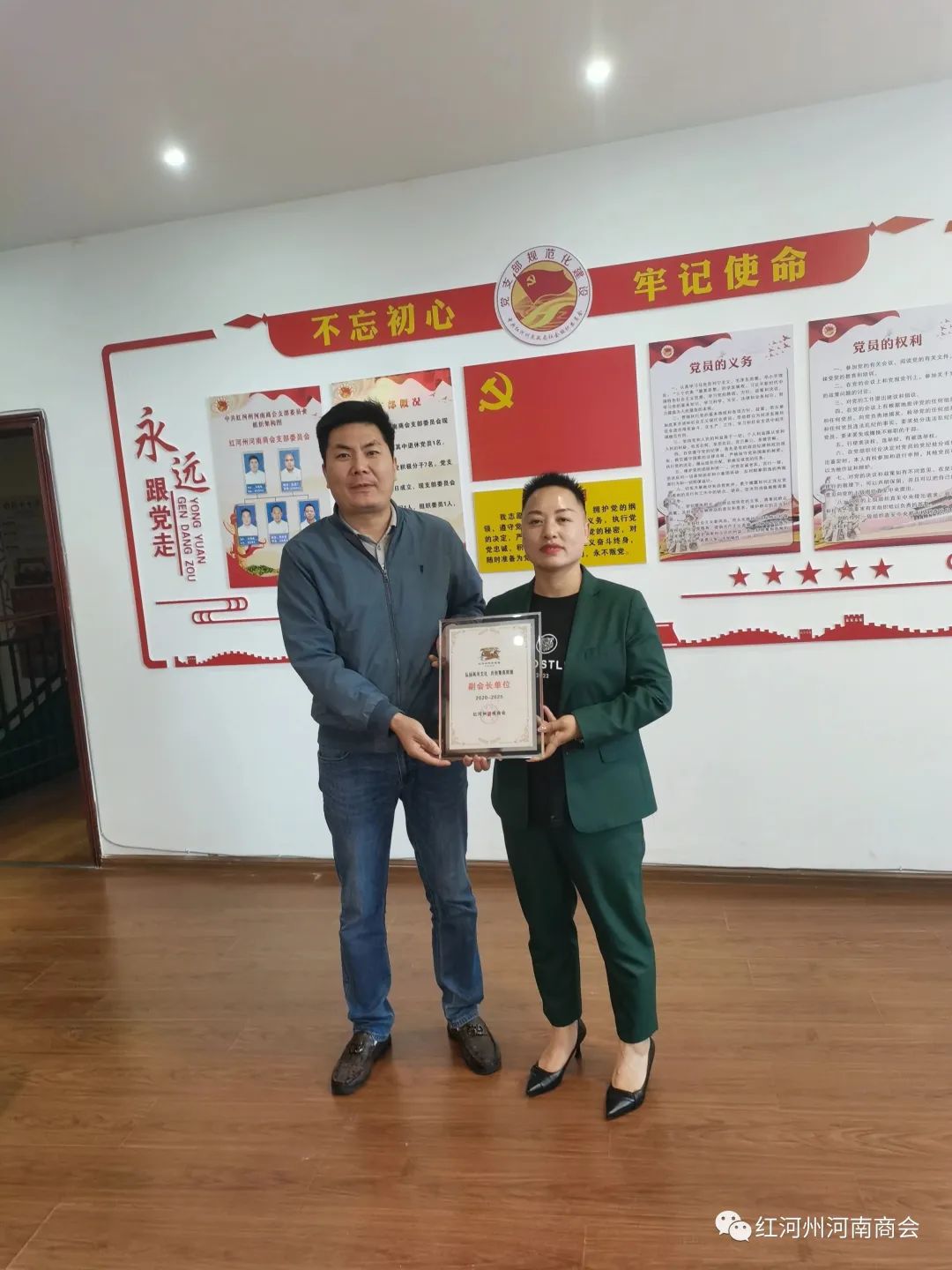 两位新晋副会长也做表态发言,今后一定会积极参与商会活动以及商会工作安排,积极联系会员、服务会员、发展会员,并表示会积极参与社会公益活动,为红河州河南商会的发展贡献自己的力量。