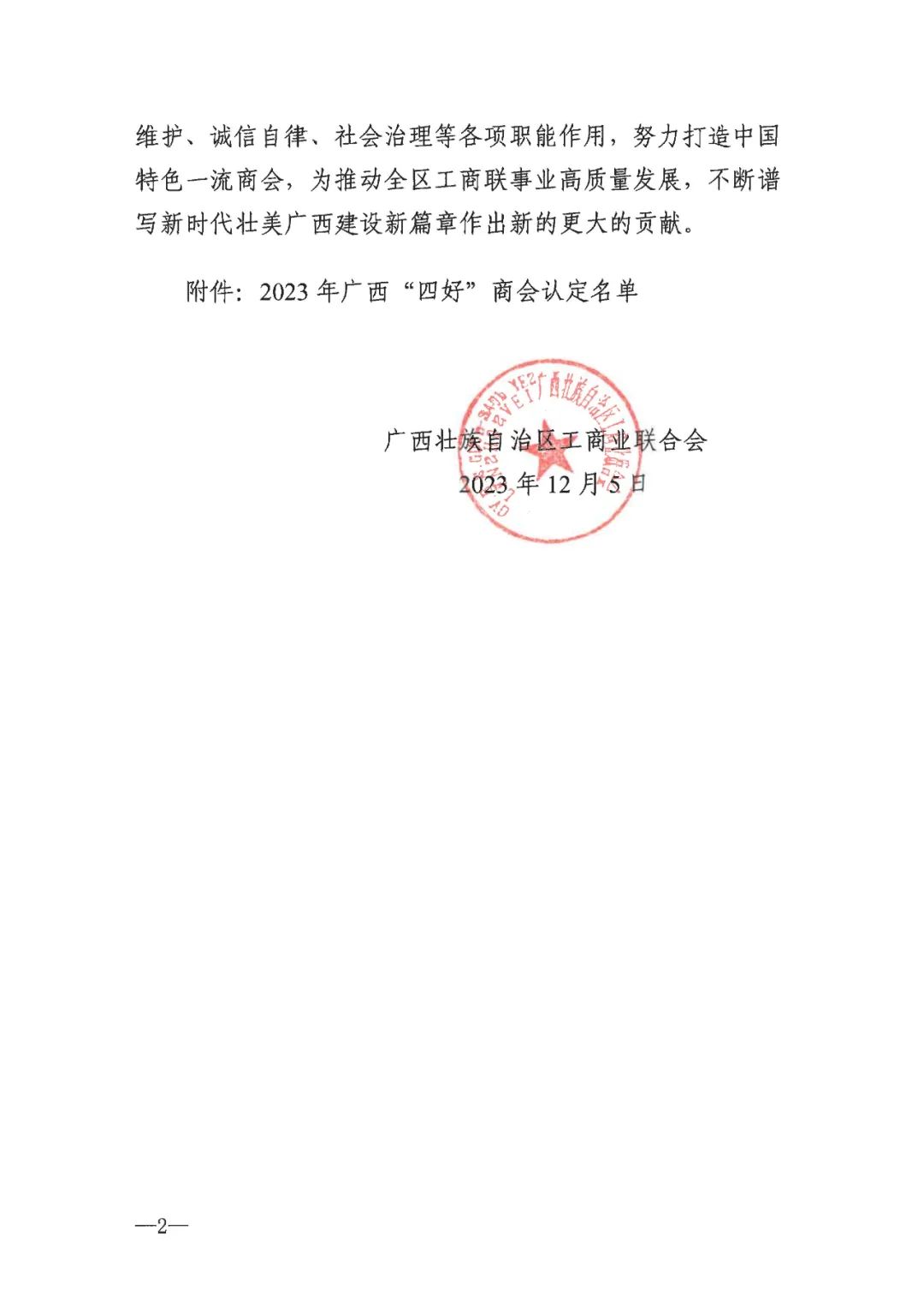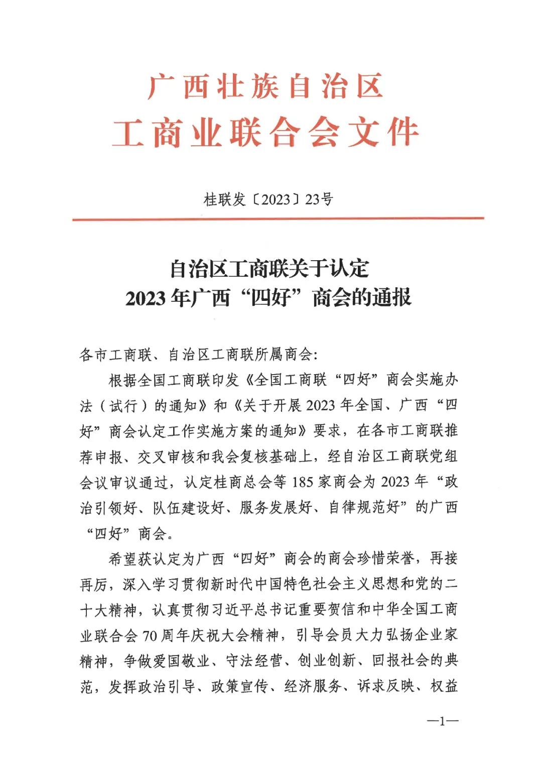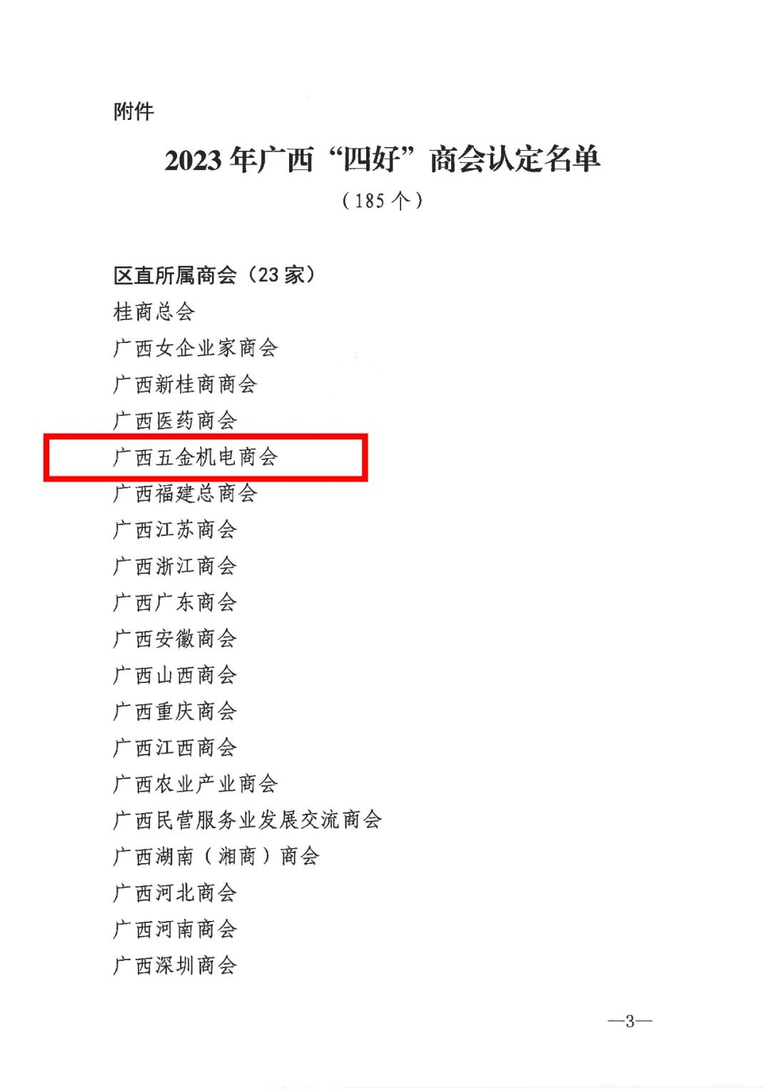 近日,广西壮族自治区工商业联合会发布《自治区工商联关于认定2023年广西“四好”商会的通报》,广西五金机电商会被评为2023年广西“四好”商会!