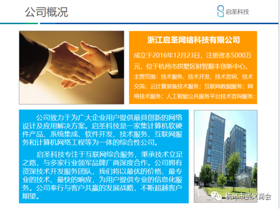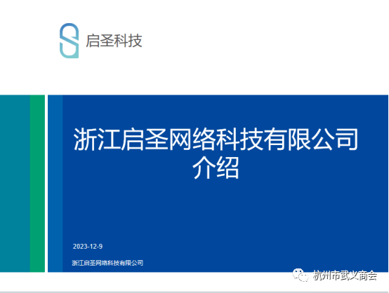 2023年12月8日,杭州市武义商会会长肖东升一行走访了商会常务副会长王巧玲企业——浙江启圣网络科技有限公司,受到王会长的热烈欢迎和热情接待。商会党支部书记金飞南,常务副会长朱玲,秘书长徐登朝和秘书处工作人员等参加活动,武义县工商联何红明书记也受邀参加走访活动。