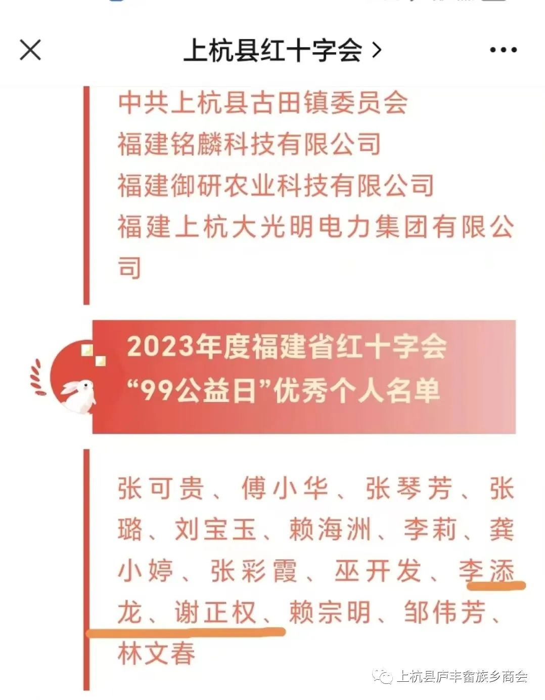 为大力弘扬公益为本,扶危救困的慈善宗旨,我会动员企业单位和个人携手参与慈善。在2023年的“99公益日”活动中,我会的常务副会长李添龙、谢正权获得福建省红十会通报表扬。
