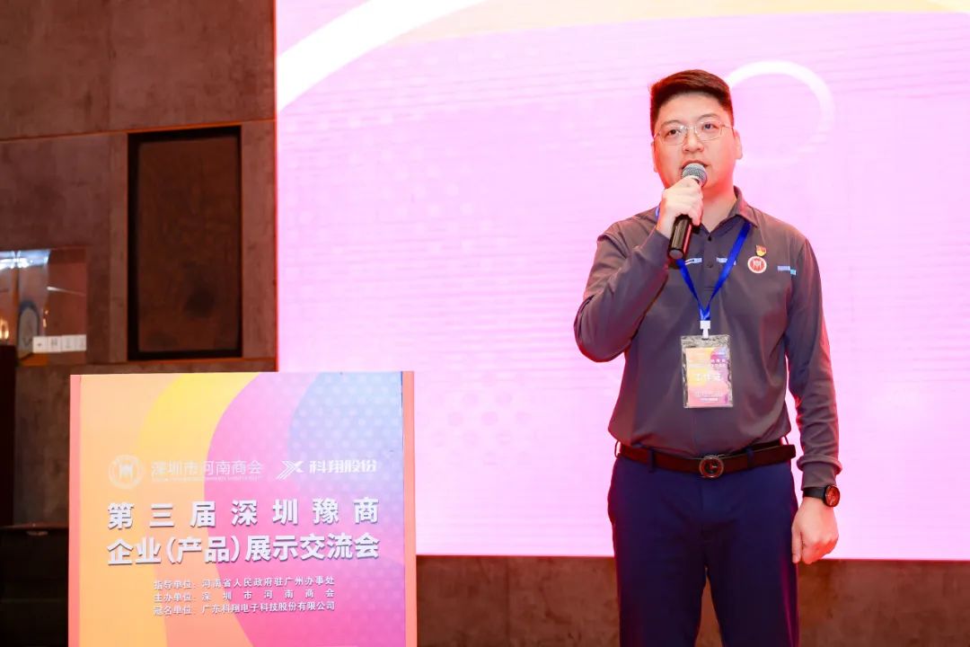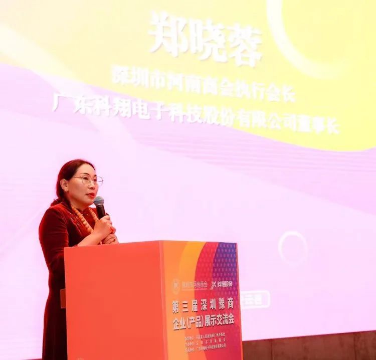 广东科翔电子科技股份有限公司董事长郑晓蓉表示很荣幸作为深圳市河南商会年度冠名赞助商。在这个充满机遇和挑战的时代,敢于创新、勇于拓展才能适应市场的变化。此次豫商展会不仅让豫商优质资源得到充分释放,而且形成了具有特色的企业交流和产品对接“内循环”机制。自加入商会以来,与商会会员企业互通有无,抱团发展,为事业的发展带来助力。她希望商会企业家能够携手并进,共促商会发展。