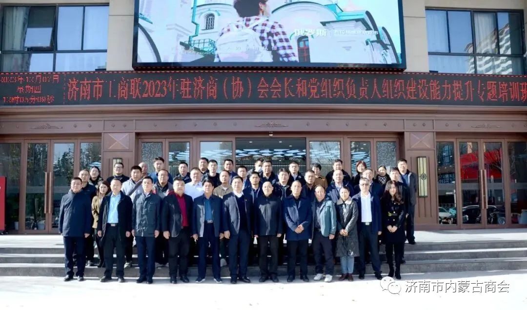 为进一步提高驻济商(协)会负责人政治素质,增强贯彻落实国家和省、市决策部署能力,提高商(协)会规范化建设,12月7日至8日,济南市工商联举办2023年驻济商(协)会会长、党组织负责人组织建设能力提升专题培训班。市工商联党组成员、副主席黄庆涛参加开班式。 济南市内蒙古商会会长乔涵参加此次培训。