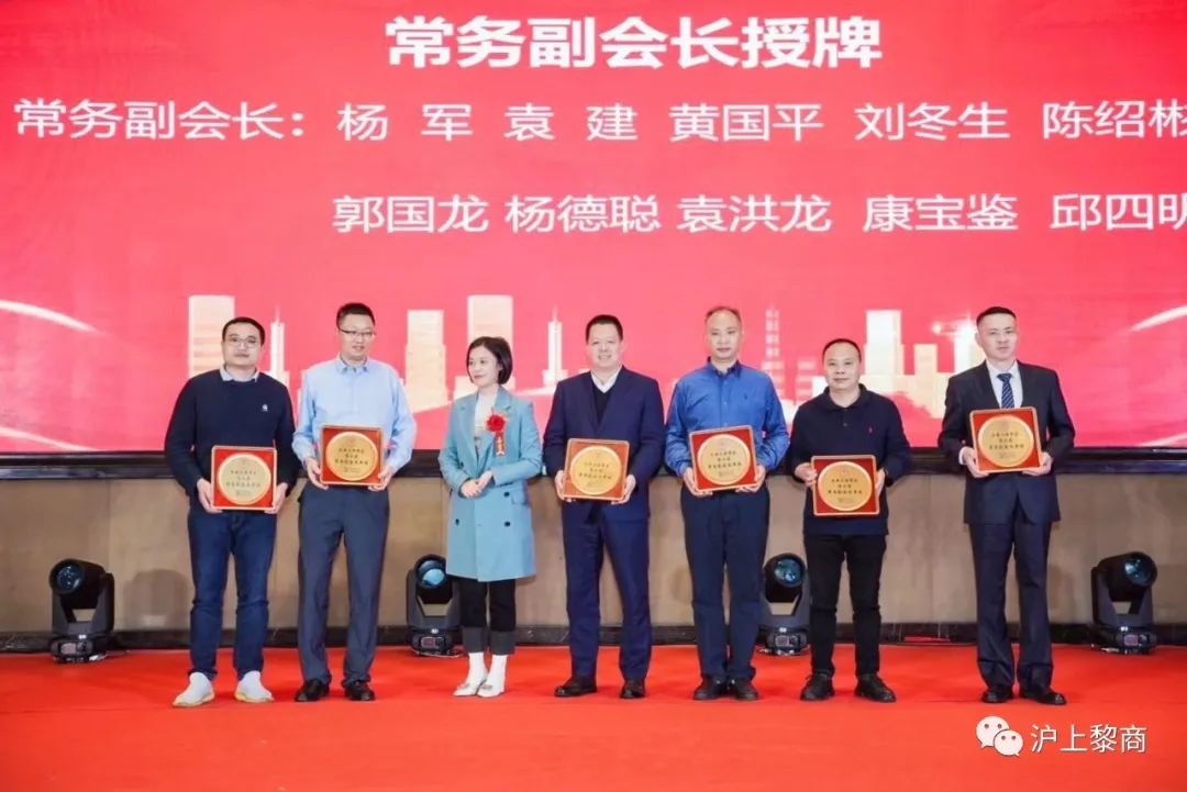 第二届乐安上海商会执行会长、常务副会长、副会长、秘书长等领导班子的授牌仪式。
