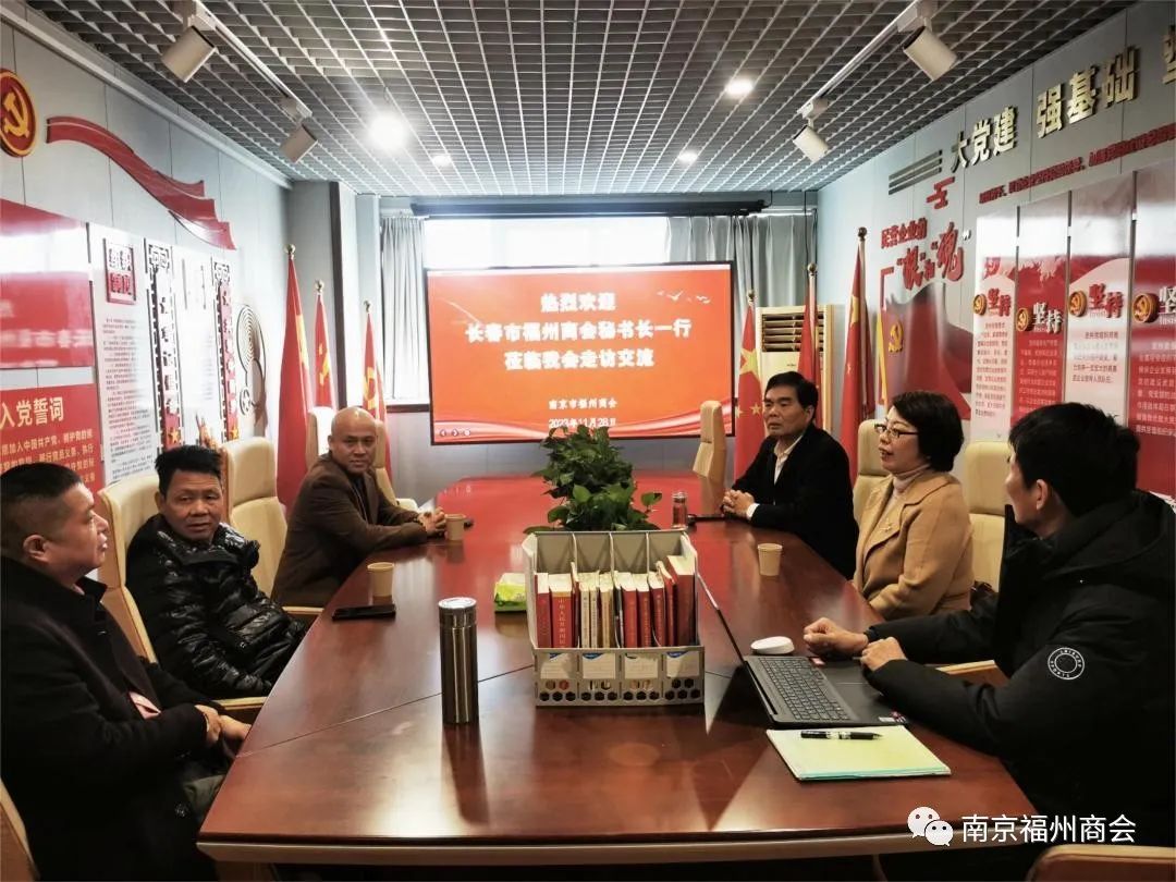 2023年11月28日,长春福州商会林民泉秘书长及南财MBA企业家联合会、南京宿迁商会夏秘书长来访我会,党支部书记兼秘书长叶光明、常务副会长陈光华(党员)、林太文(党员)、魏乐文(党员)参与接待。
