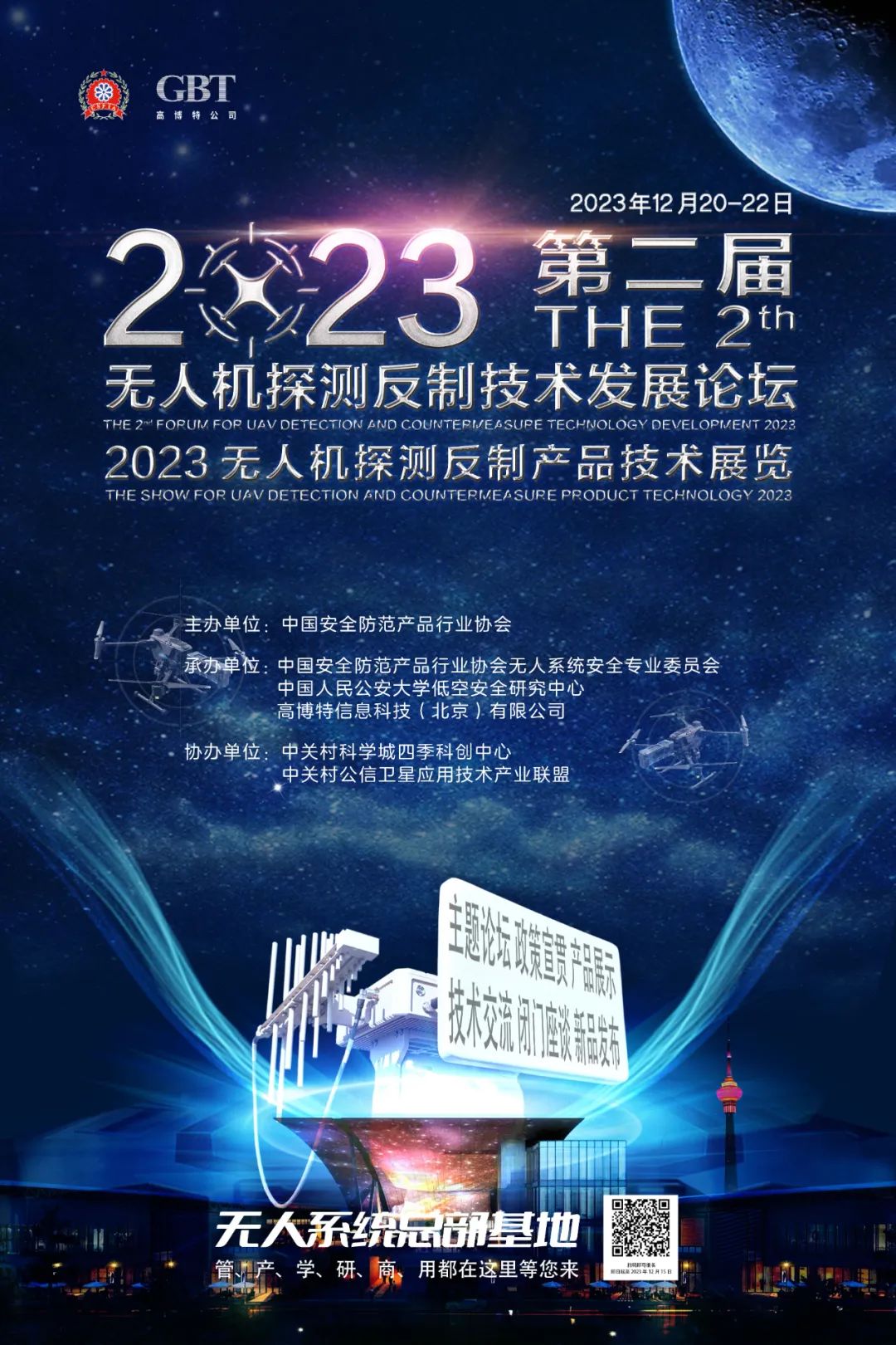 继2022年9月13日“2022无人机探测与反制研讨会”和第十六届(2023)中国国际社会公共安全产品博览会期间首届中国安防无人系统安全高峰论坛” 成功举办后,由中国安全防范产品行业协会主办、中国安全防范产品行业协会无人系统安全专业委员会承办的“第二届无人机探测反制技术发展论坛”定于2023年12月21日-22日在北京中关村四季科创中心举办。本次论坛的主题是“贯彻暂行条例,共建立体安防”。来自公安、工信、民航等部委的主管,中电科、航空、航天、国网、南网、石油等行业用户,监测、检测第三方和相关高校、科研机构,无人机探测反制领域专家和相关企业踊跃报名参加本次活动。举办本次论坛,是在国务院、中央军委颁布《无人驾驶航空器飞行管理暂行条例》即将于2024年1月1日起实施的背景下组织的具有权威性和实用性的活动,是对我国无人机探测反制技术和产品的一次整体展示,也是一次权威专家指导、宣贯和解读的盛会,对我国无人机探测反制技术的健康发展和规范管理将起到积极意义。公安机关作为《无人驾驶航空器飞行管理暂行条例》明确赋予无人飞行器安全监管职责的部门,对无人机探测反制高度重视。本次论坛得到各级公安机关热烈响应。本次论坛以“1+5+1”的形式举行,分别是1个主论坛、5个专题座谈交流会、1个成果展示。大会主论坛包括开幕式、专家观点、主题报告和高端对话,邀请政府主管、院士、行业用户、研制企业、科研院所以及业内专家演讲和参加。21日下午举办的无人机探测反制行业发展交流会,除了邀请部分优秀企业代表报告外,还将邀请公安实战部门、民航、国网、南网、核电、石油石化等重点行业客户代表讲解需求和案例。雷达技术应用交流会、无线电电磁频谱技术应用交流会、标准体系建设座谈会也分别邀请了业内知名专家和企业就普遍关心的痛点、难点进行交流,促进优势互补,助力共赢合作。论坛详细报告嘉宾和报告内容近日将公布,请关注中国安防协会网站和公众号。成果展示,是同期举办无人机探测反制产品技术展览。主办方选择在中关村四季科创中心A座的“无人系统总部基地”展厅展出,由我国最早无人机品牌展会“尖兵之翼”创办者高博特公司参与承办。展厅和会议论坛的地点在一起,交通便利,停车位充足,周边各军兵种总部机关、军工集团总部机关、国家部委和高校集中,已常态化作为无人系统优秀产品的展示交流平台。活动信息发布一周,目前已有上海特金、理工全盛、宏泰控飞、杭州杰能、神州明达、深圳耐杰、四创电子、锐士装备、浙江双凡、耀峰雷达、和普威视、西安智语云、中电14所、郑州中科集成、山东创惠等反无领域的头部单位已确定展位,将集中展示优秀的无人机探测反制装备和技术。现在专业观众报名通道已投入使用。有意参加论坛、参加展览和参观的专业人士,请识别下列二维码,注册登记报名。我们将竭诚为您做好服务!(也可电话咨询以下工作人员)