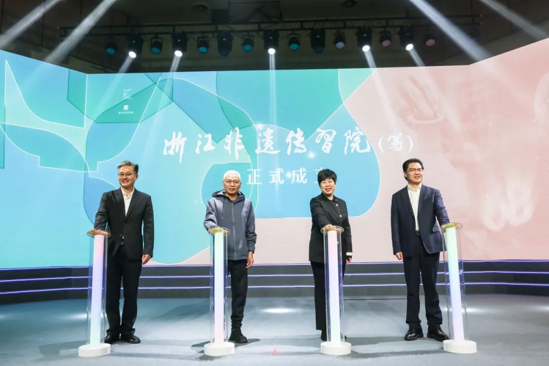▲李新芳、陈先春、叶菁、薛亮为浙江非遗传习院(筹)揭牌
