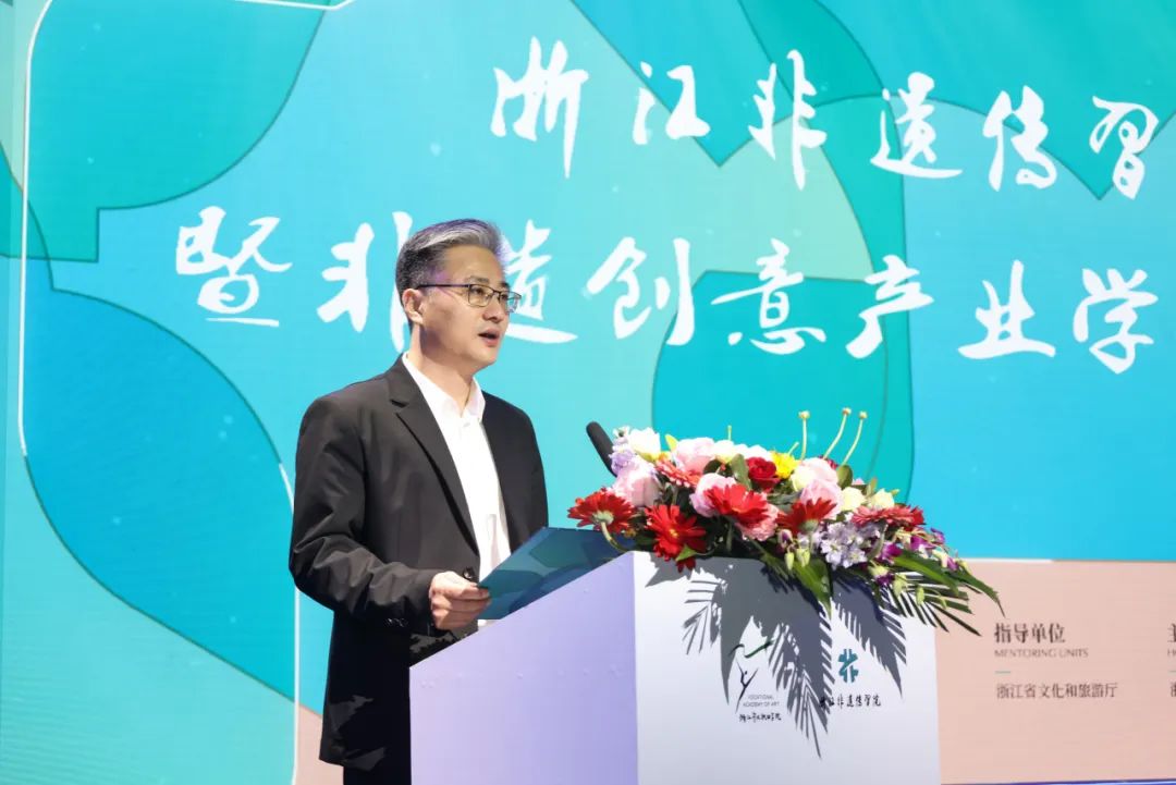 “浙江艺术职业学院办学68年来,为浙江文化事业培养输送了大批优秀文化艺术人才。随着我省非遗保护传承工作的不断加强,进一步发挥好高校对非遗事业的智力支持和人才支撑作用,已经成为学校必须扛起的新的使命担当。”薛亮在致辞中表示,在省文化和旅游厅等上级部门的关心指导下,浙艺积极发挥办学优势,主动探索非遗融入国民教育新路径,深入调研全国近200所高校非遗教学与研究办学现状及相关行业企业人才需求,谋划搭建浙江非遗传习院(筹)暨非遗创意产业学院新的专业平台,制订非遗专业建设五年规划,锚定打造高水平非遗传承保护专业群、搭建高能级非遗研究平台、培养高素质非遗技能人才建设目标,努力走出一条艺术职业教育类型化发展的办学新路。