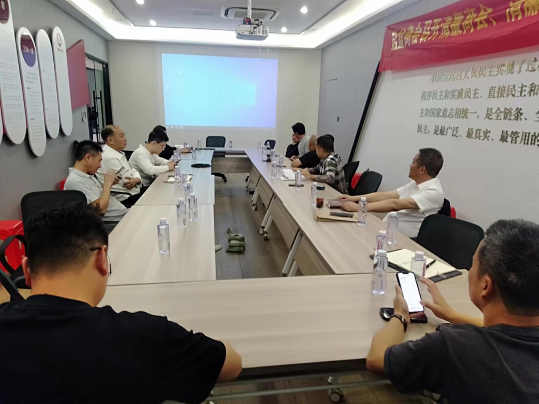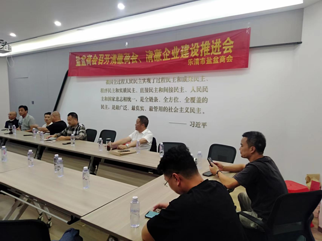 2023年10月11日,盐盆商会理事理事会召开清廉商会、清廉企业建设推进会,盐盆街道党工委委员何胜杰出席并讲话,会议由商会常务副会长本月轮值会长王春余主持。