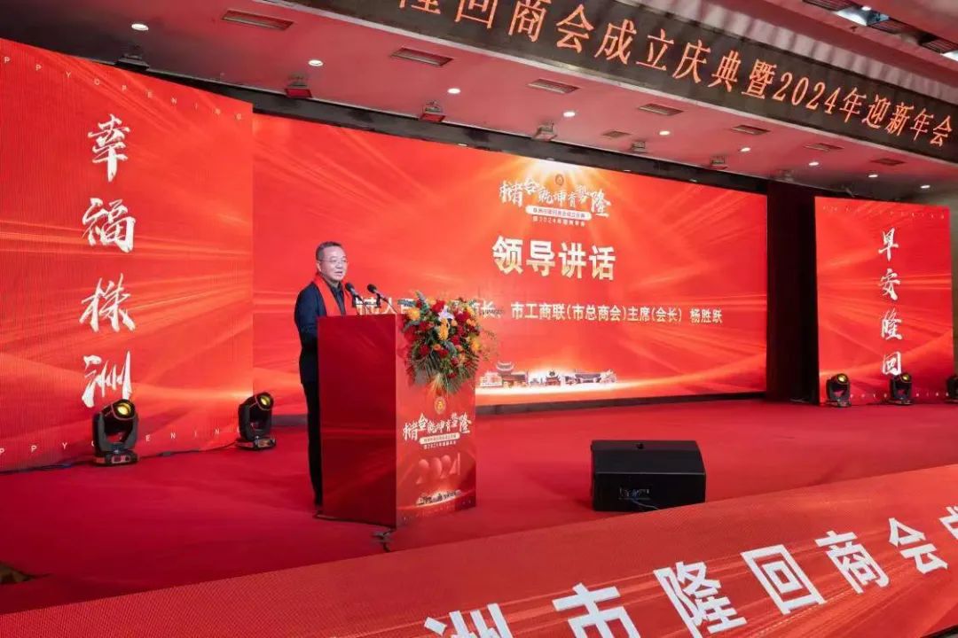 12月10日,株洲市隆回商会成立庆典暨2024年迎新年会在天台山庄举行。活动现场,市人民政府副市长、市工商联主席杨胜跃为商会授牌并发表讲话。