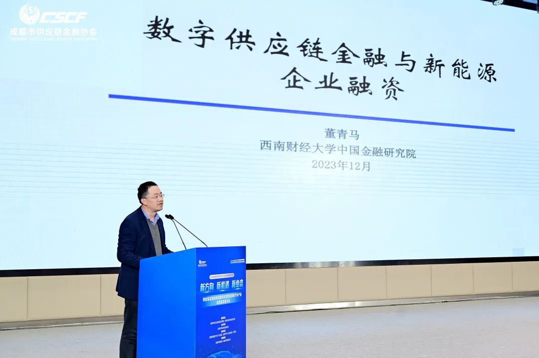 西南财大金融研究院副院长董青马深入分析了数字供应链金融与新能源企业融资的关系,他的主旨演讲围绕产业发展现状、数字供应链金融的基本原理、痛点分析及应对策略进行了深刻剖析。