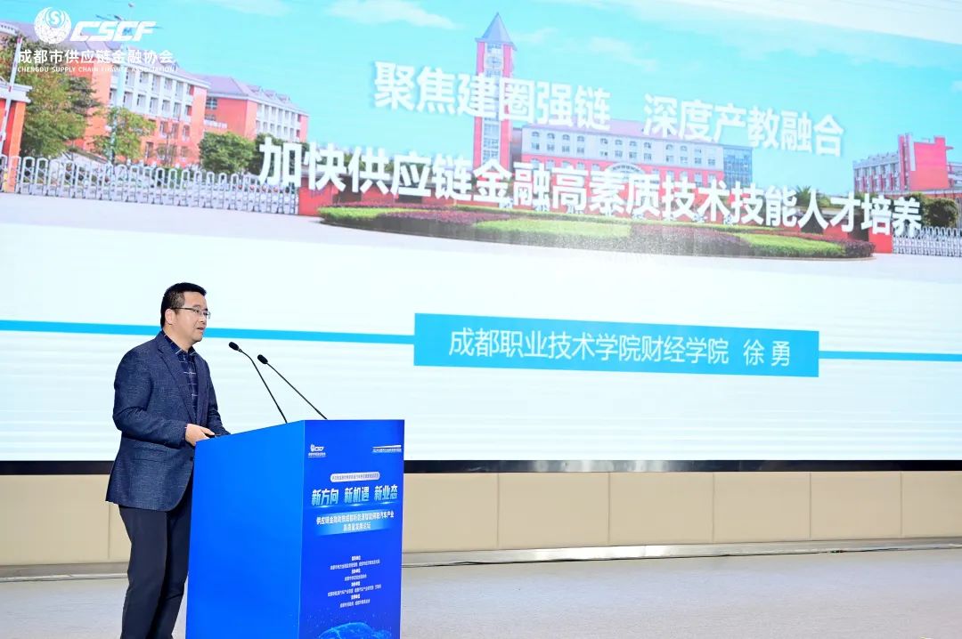 成都职业技术学院财经学院执行院长徐勇教授则针对供应链金融人才培养问题发表了演讲,强调了技术技能人才在推动行业发展中的关键作用。