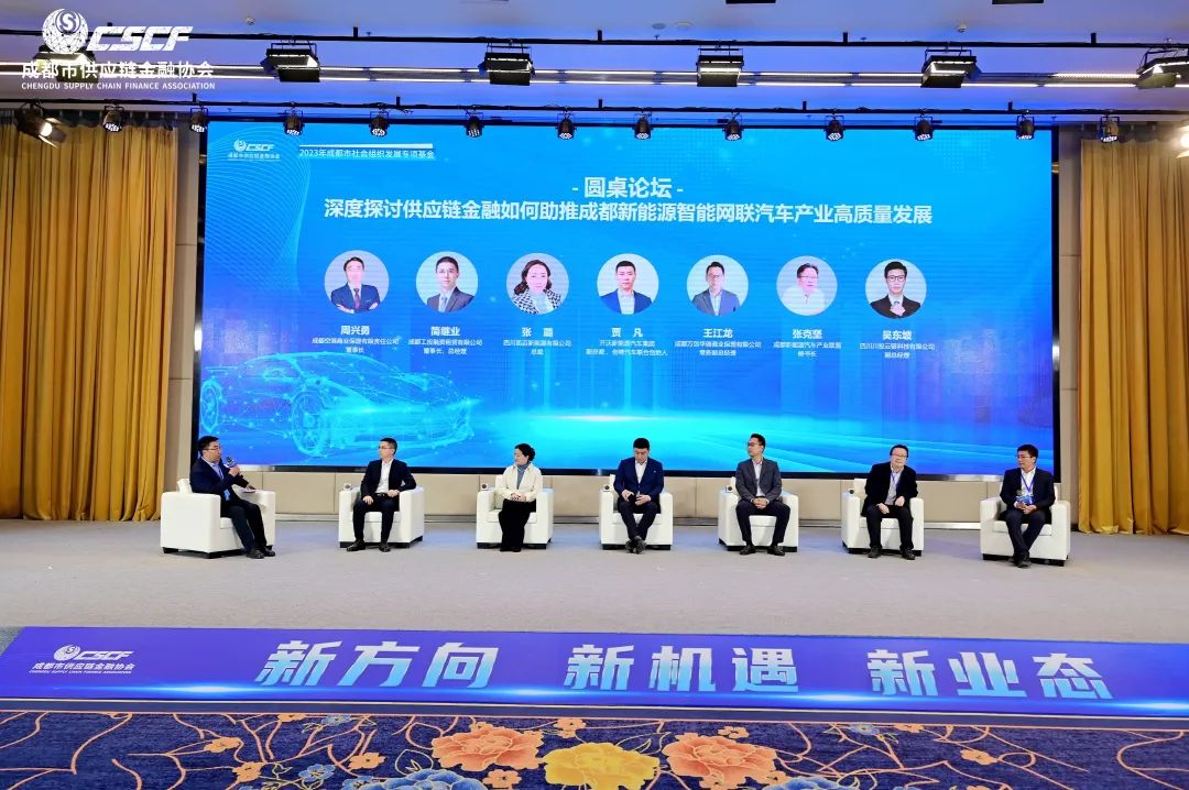 此外,在论坛上还进行了以“‘深度探讨供应链金融如何助推成都新能源智能网联汽车产业高质量发展”的圆桌论坛。由成都空港商业保理有限责任公司董事长周兴勇主持,多位业内专家和企业领袖共同探讨了供应链金融在助推成都新能源智能网联汽车产业高质量发展中的角色与策略。