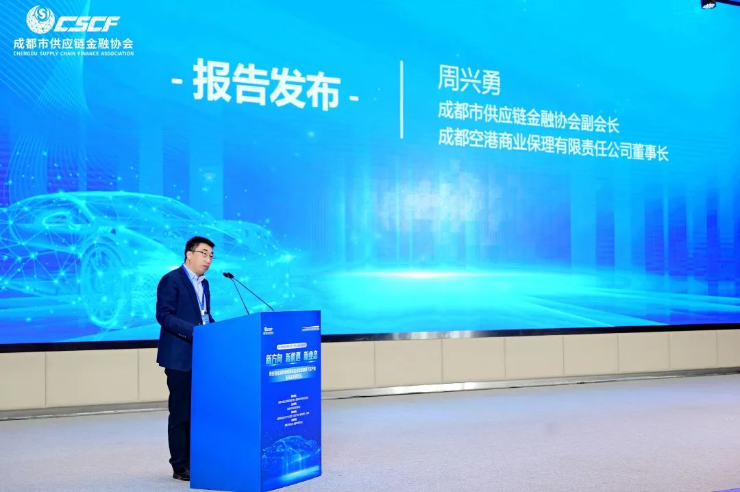活动开场致辞由成都空港商业保理有限公司董事长兼成都市供应链金融协会副会长周兴勇发表,他强调了供应链金融在当前经济环境下的重要性及其在推动新能源汽车产业发展中的关键作用。他强调了供应链金融在当前经济环境下对于新能源汽车产业发展的重要性。接着,2023供应链金融助推新能源汽车制造建圈强链项目编委会发布了《成都市新能源智能网联汽车供应链金融政策研究与建议》研究报告,旨在为行业未来发展提供政策建议和方向指导。