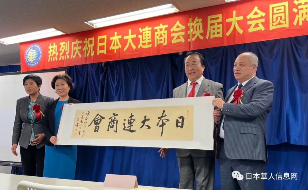 大连市向日本大连商会赠送“会名书法作品”。