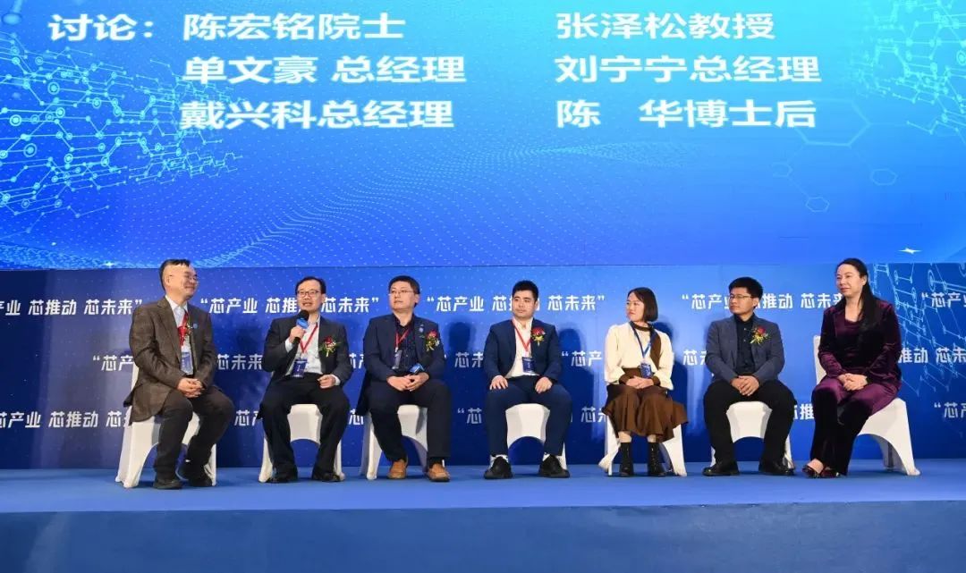 在“芯观点”院士论坛科技发展圆桌讨论上,北京大学深圳系统芯片重点实验室主任何进教授,俄罗斯工程院外籍院士陈宏铭教授,香港城市大学协理校务副校长张泽松教授,深圳市商务局事务专员陈华博士后,曼瑞德科技董事长单文豪,东威半导体总经理刘宁宁,微源半导体董事长戴兴科七位嘉宾就芯片科技的发展与未来、国产替代等话题进行讨论并与现场观众充分交流。