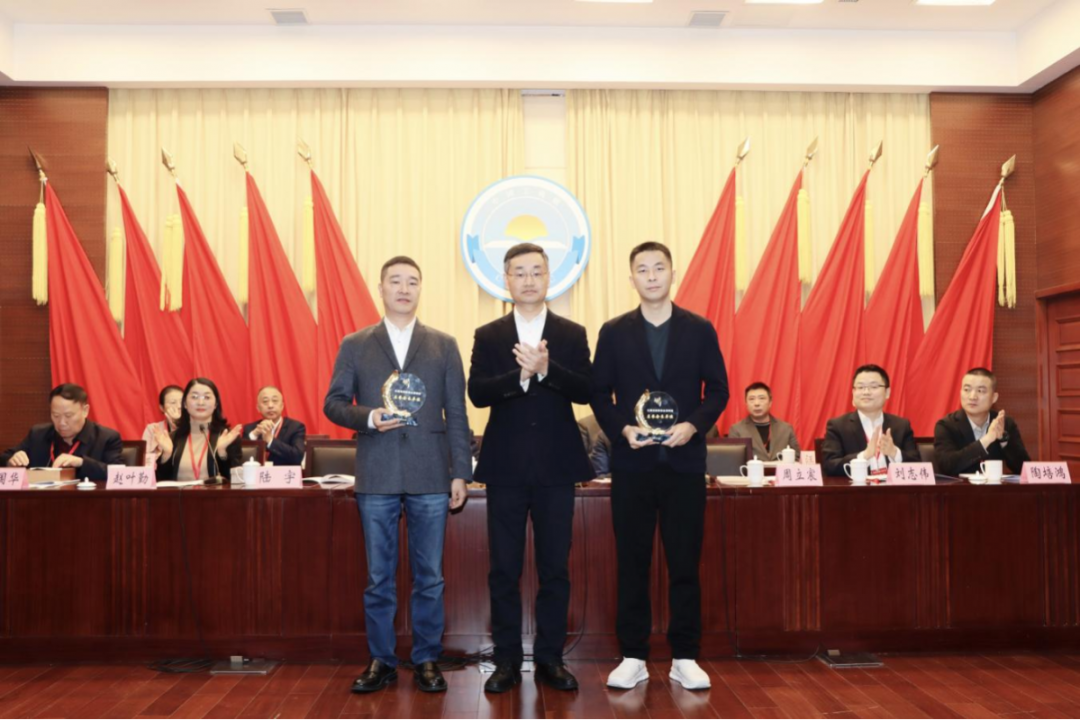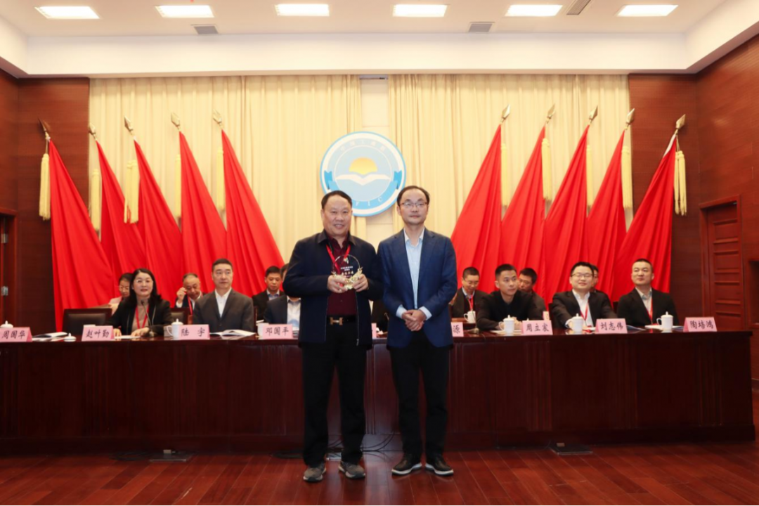 陈雪源、王文平、邓国平等与会领导为新当选的商会会长、名誉会长、监事长、副会长、理事、监事授牌。