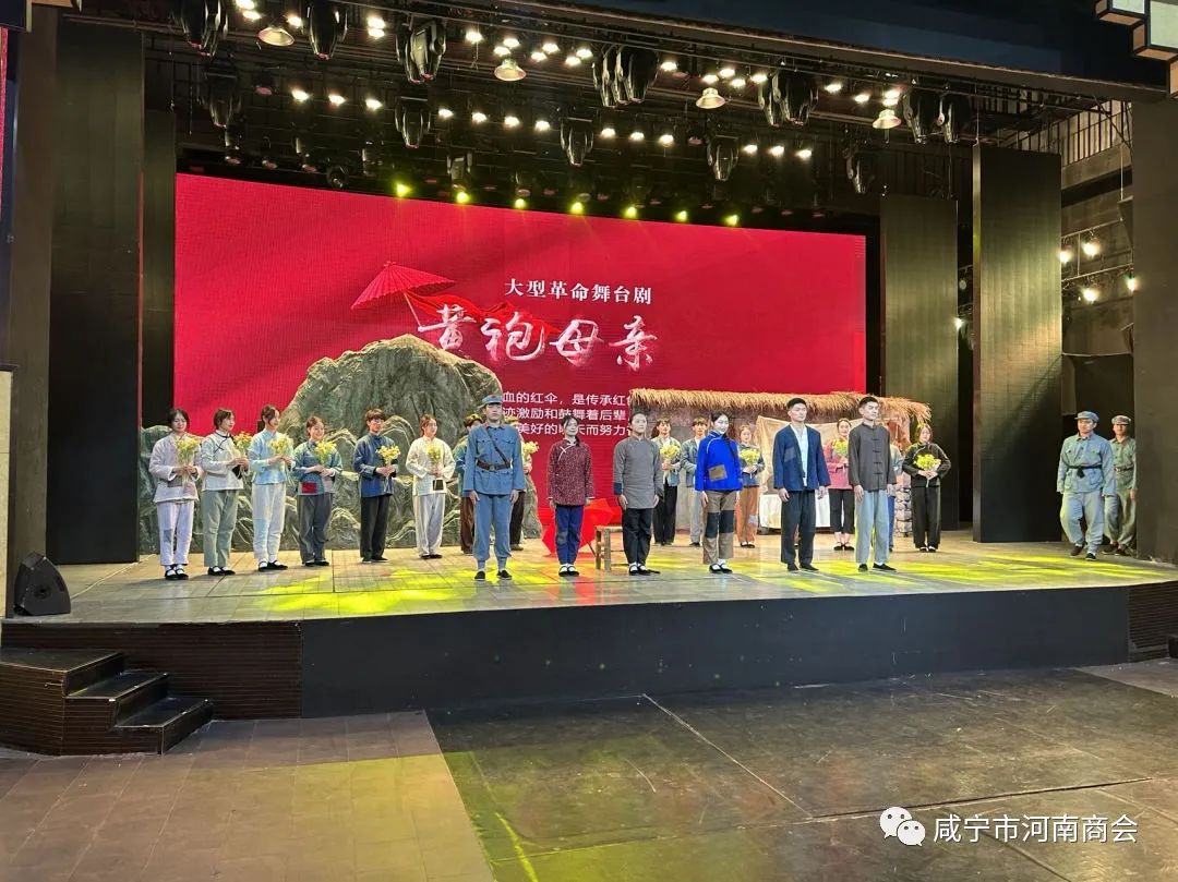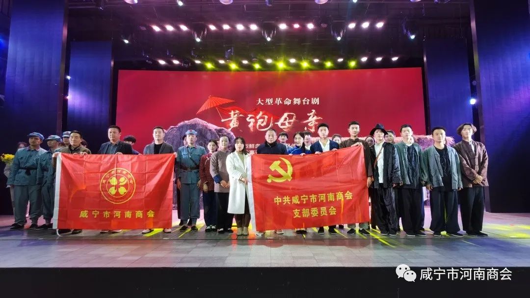 12月10日,咸宁市河南商会组织广大会员及党员百余人在时舞剧场观看了由湖北科技学院与商会理事单位湖北香城文化传媒科技联合创作的大型革命题材舞台剧《黄袍母亲》。