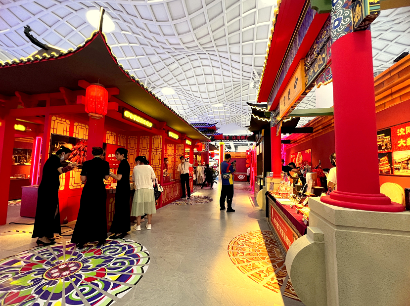 据了解,沈阳中街展区面积达350平方米,现场集中展示了老字号、特色文化、名优产品、非遗传承等百余种中街的特色品牌,其中不乏具有悠久历史传承的萃华金店、老边饺子、马家烧麦、中街冰点等老字号企业和具有地域品牌特色的德氏冷饮、辽宁有礼等名优商品,也有以李氏糖人手工艺品、烙画艺术、琥珀雕刻、传统锡雕、胡魁章制笔工艺为代表的非物质文化遗产,以及三寸盛京为代表的新中式服饰文化和以中央里文化旅游景区为代表的沉浸式体验文化。