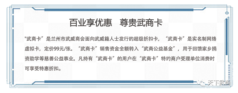 持“武商卡”可在所属武威四家店、兰州三家店享受全单9折优惠!