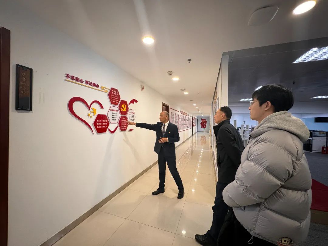 马献立带领研究会成员参观商会党建长廊、会议室、党员活动室、书记室等,研究会成员无一不被商会庄严厚重的氛围所感染。随后,双方开展了座谈交流。马献立指出,协会领导要高度重视党建工作,同时要建立健全党员管理制度、会议制度,按上级党委要求加强对党员的关怀与教育,做好培养吸纳新党员的工作。双方成员在座谈过程中坦诚交流,就党建工作的具体方式方法和实践经验进行深入探讨,互相启发,收获颇丰。