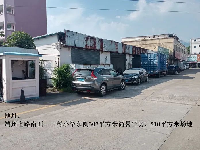 肇庆市端州区端州七路南面、三村小学东侧307㎡简易厂房、510㎡场地 | 面积约817㎡(其中简易厂房307㎡,场地约510㎡) | 每月6130元 | 6年 | 73560元(大写:人民币柒万叁仟伍佰陆拾元整) | 竞得价的三个月租金 |