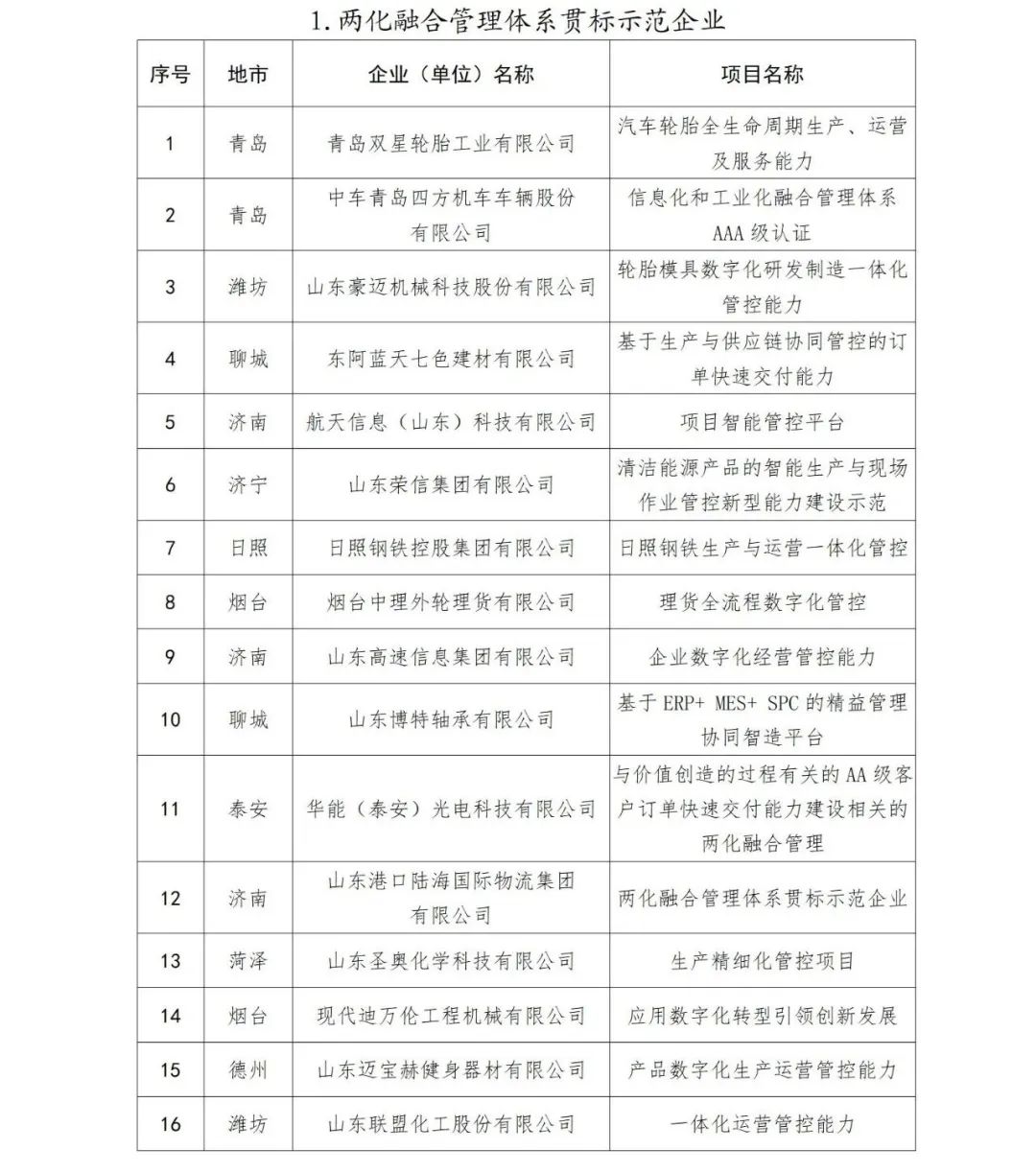山东省2023年新一代信息技术与制造业融合发展示范名单