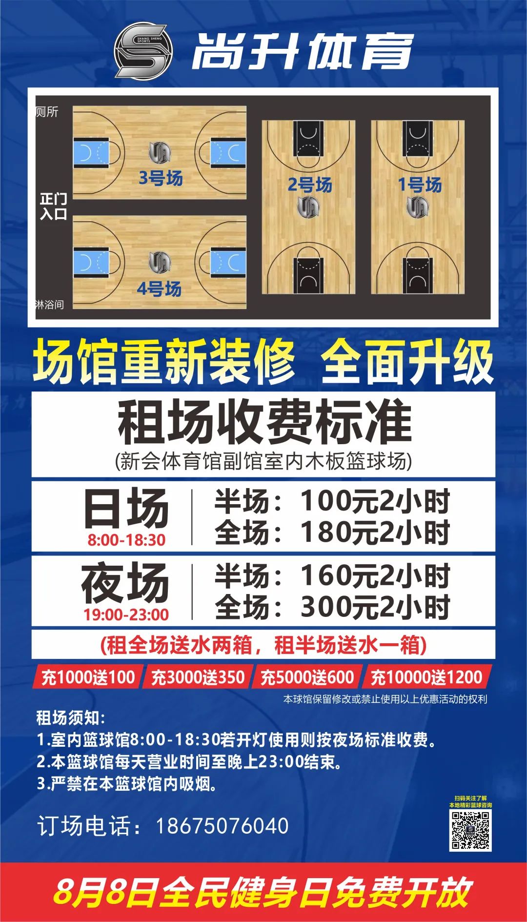(场馆全面装修升级)订场电话:18675076040