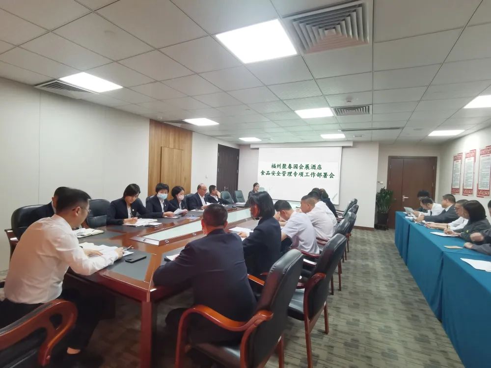 为全面落实《关于贯彻落实福州聚春园集团食品安全专项部署会精神的意见》文件精神,酒店党支部副书记、总经理顾淼组织全体高职人员及质检小组成员召开食品安全管理专项工作部署会议,传达了聚春园集团关于食品安全工作的会议精神,同时组织学习了《食品安全法》,要求所有人员加强食品安全意识,严把食品安全关,为酒店食品安全保驾护航。