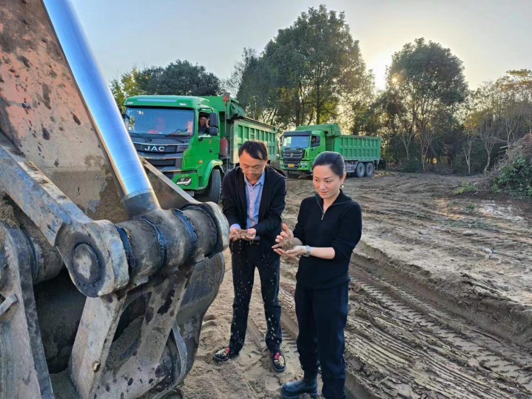 11月16日上午,公司常务副总经理黄伟陪同磨子潭镇、东流河村相关负责人到东流河清淤点一、二工区查看现场清淤混合料堆放情况。