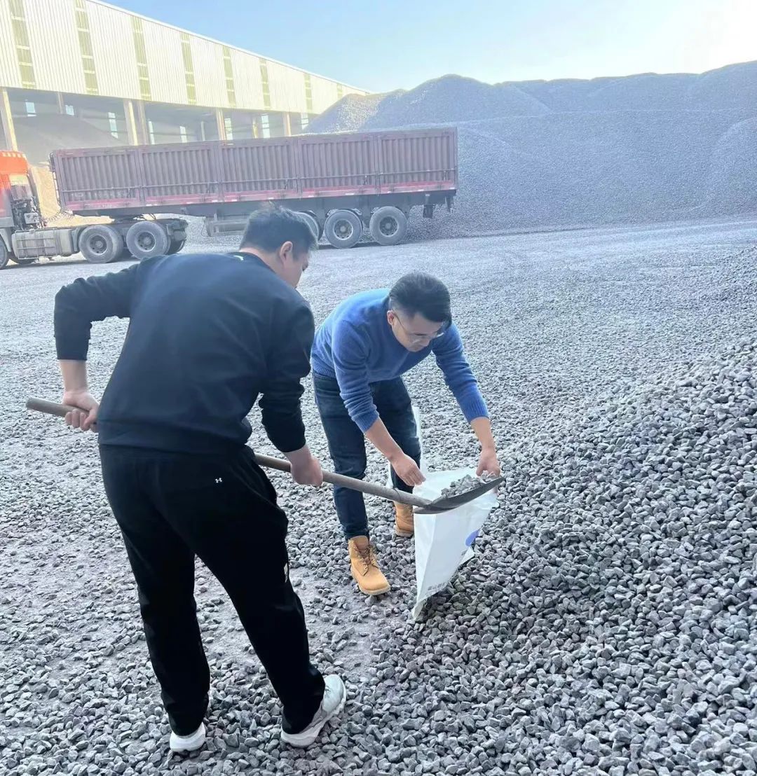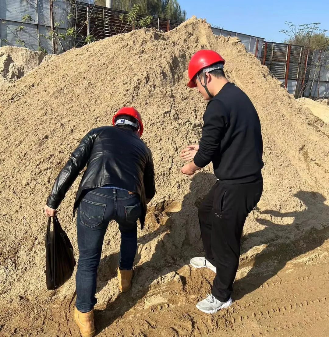 11月14日下午,六安美臣金谷环保科技有限公司张总一行到新河河口、高桥湾站点查看产品质量并现场取样,双方就砂石料购销事宜进行商谈。