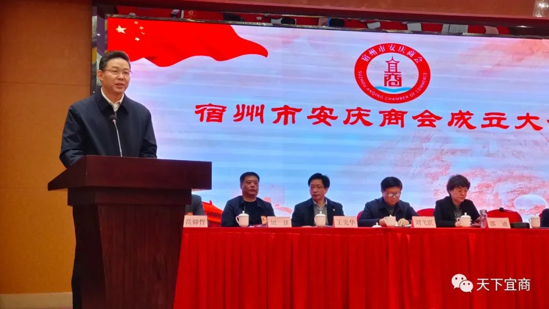 12月10日,宿州市安庆商会成立大会在丰大国际酒店隆重召开。安庆市政协副主席、市工商联主席杨林、安庆市宜商总会常务副会长、原市人大常委会副主任刘飞跃到会祝贺。
